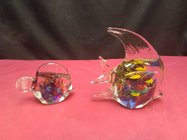 2 Murano Glass Block fish marine aqu