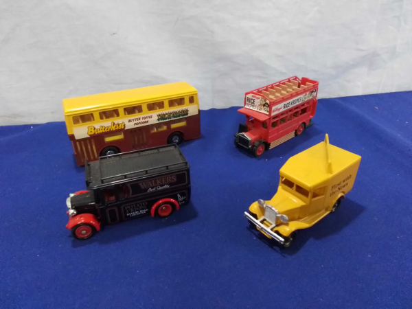 2 Matchbox Buses and 2 LLEDO Cars.